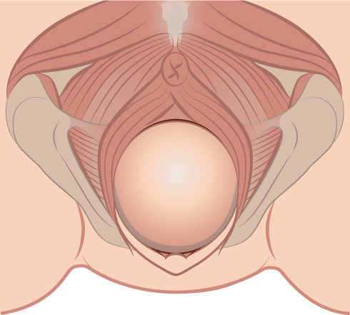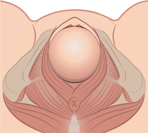 Figur I gynläge sträcks musklerna i bäckenbotten maximalt både i horisontell och vertikal riktning.
